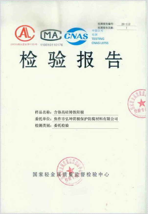高硅鑄鐵犧牲陽極檢驗報告1