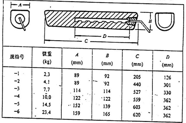 D形截面鎂陽極形狀及尺寸: