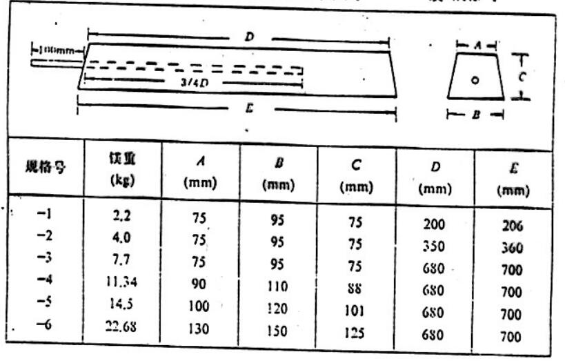 梯形截面鎂合金陽極規(guī)格: