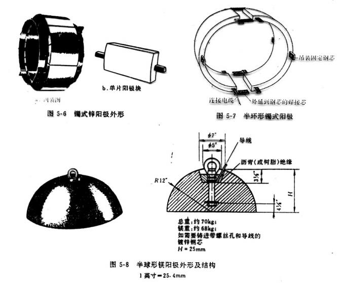 在陽極形狀的選擇上,根據(jù)被保護(hù)對(duì)象,環(huán)境的具體情況選擇陽極形狀,土壤中多用棒形陽極(截面有梯形、D形、矩形等),如果是其它形狀的陽極,則多用于特殊場合中。